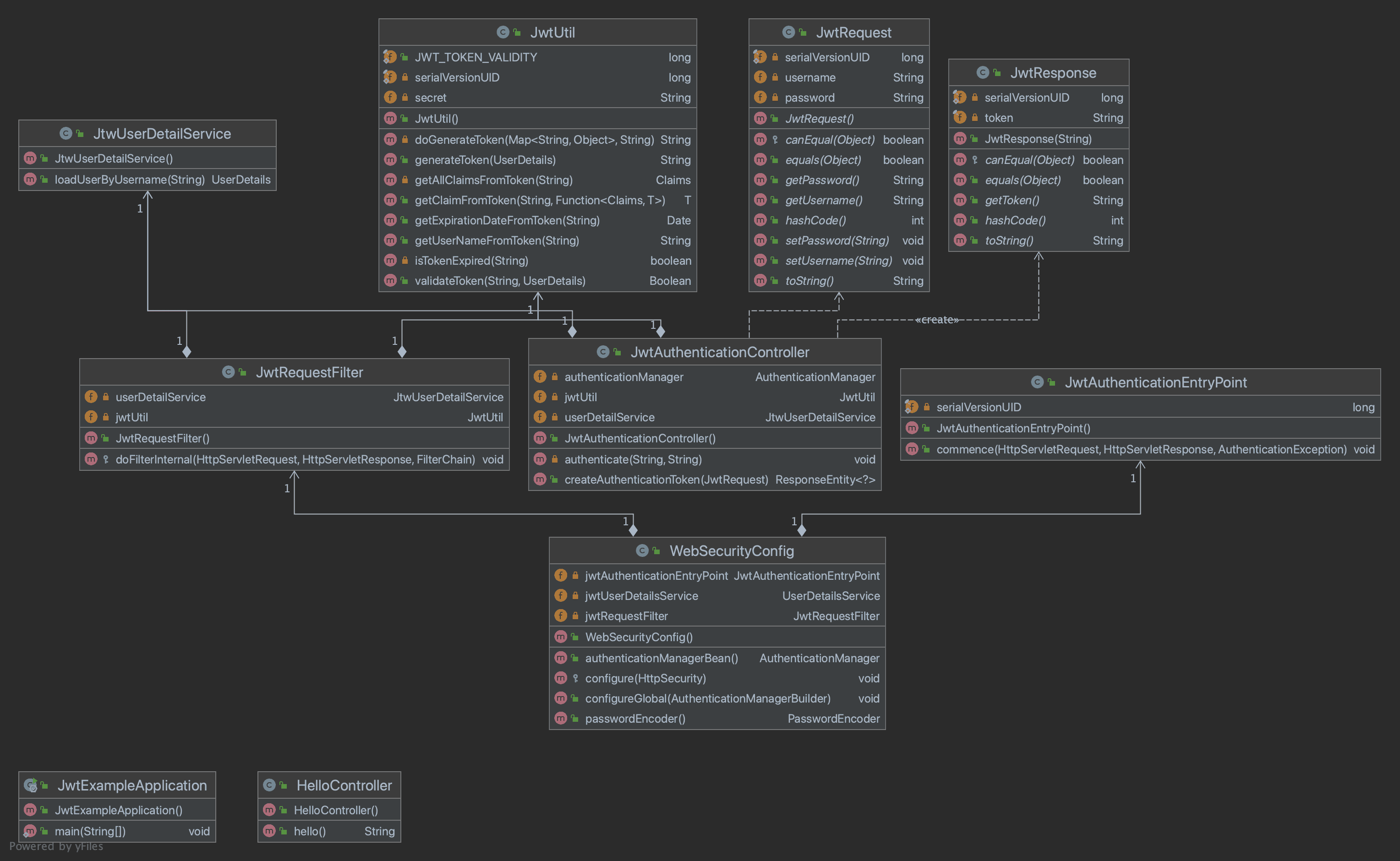 * JwtRequestFilter 继承了 Spring Web Filter OncePerRequestFilter 类。
