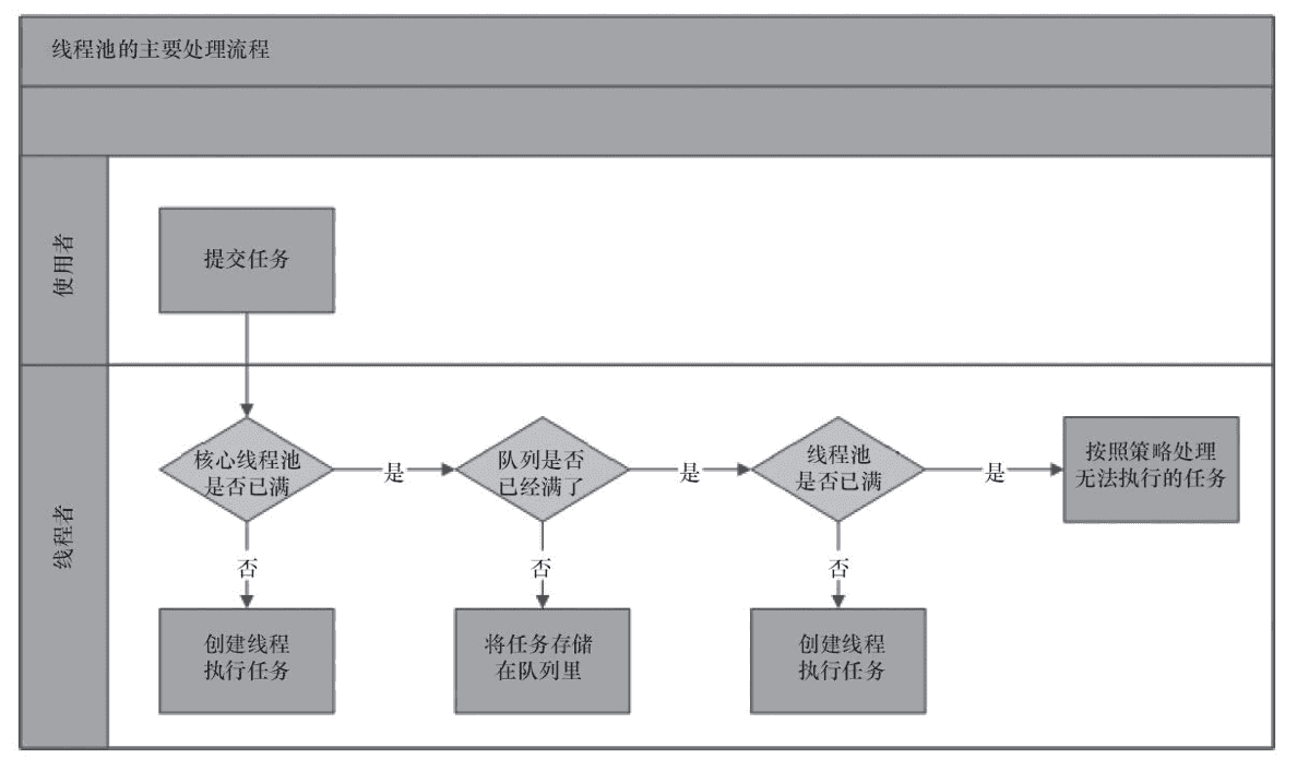 从上图可以看出,使用者提交一个任务后,线程池的处理流程如下: